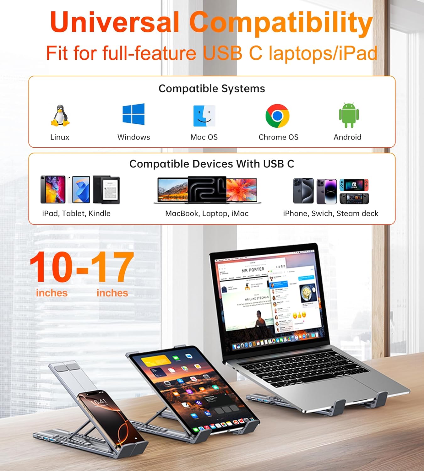 Compatible with MacBook, Surface, Dell, HP, and other laptops with USB-C or Thunderbolt 3/4 ports.